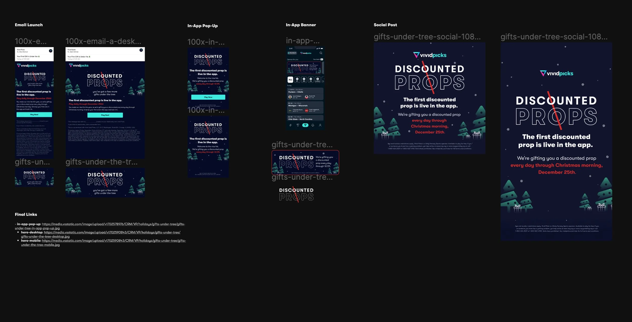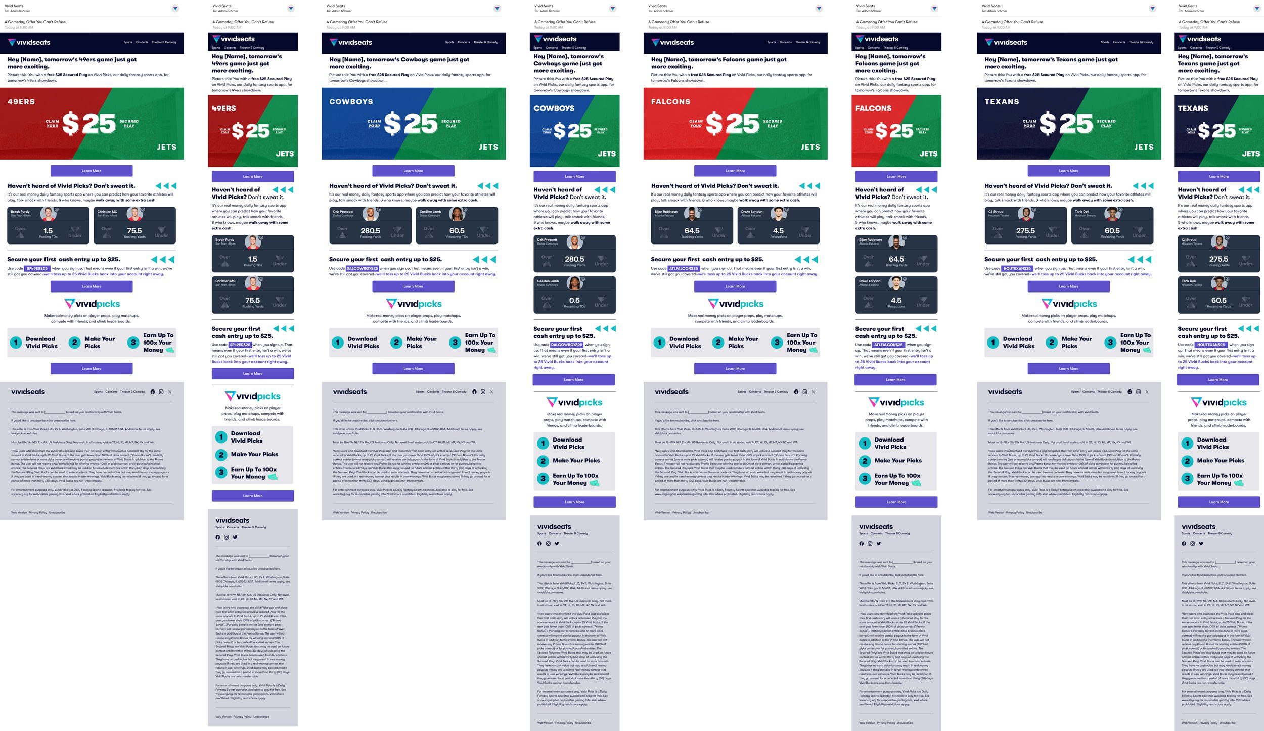 Email Marketing – Partnered with the UX, marketing, and creative teams to design visually compelling, user-focused email campaigns for both Vivid Seats and Vivid Picks (Daily Fantasy Sports), helping improve customer engagement and the overall experience journey.